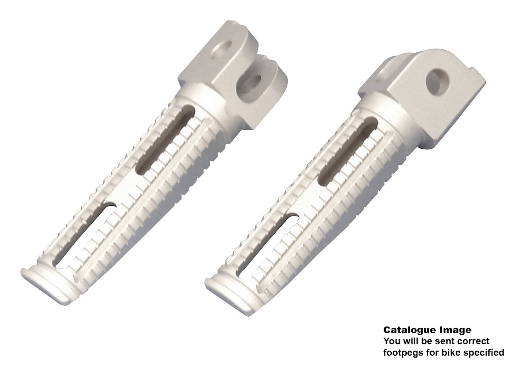 Billet aluminium racing footpegs|Designed to replace OEM’s|Aluminium offers weight reduction over stock pegs|Rigid 1pc construction – no assembly required|Slash-Cut for increased ground clearance|Machined sole grooves for optimum grip|Uses existing OEM mounting hardware and springs|See Model Fitment Tab for fitting details|